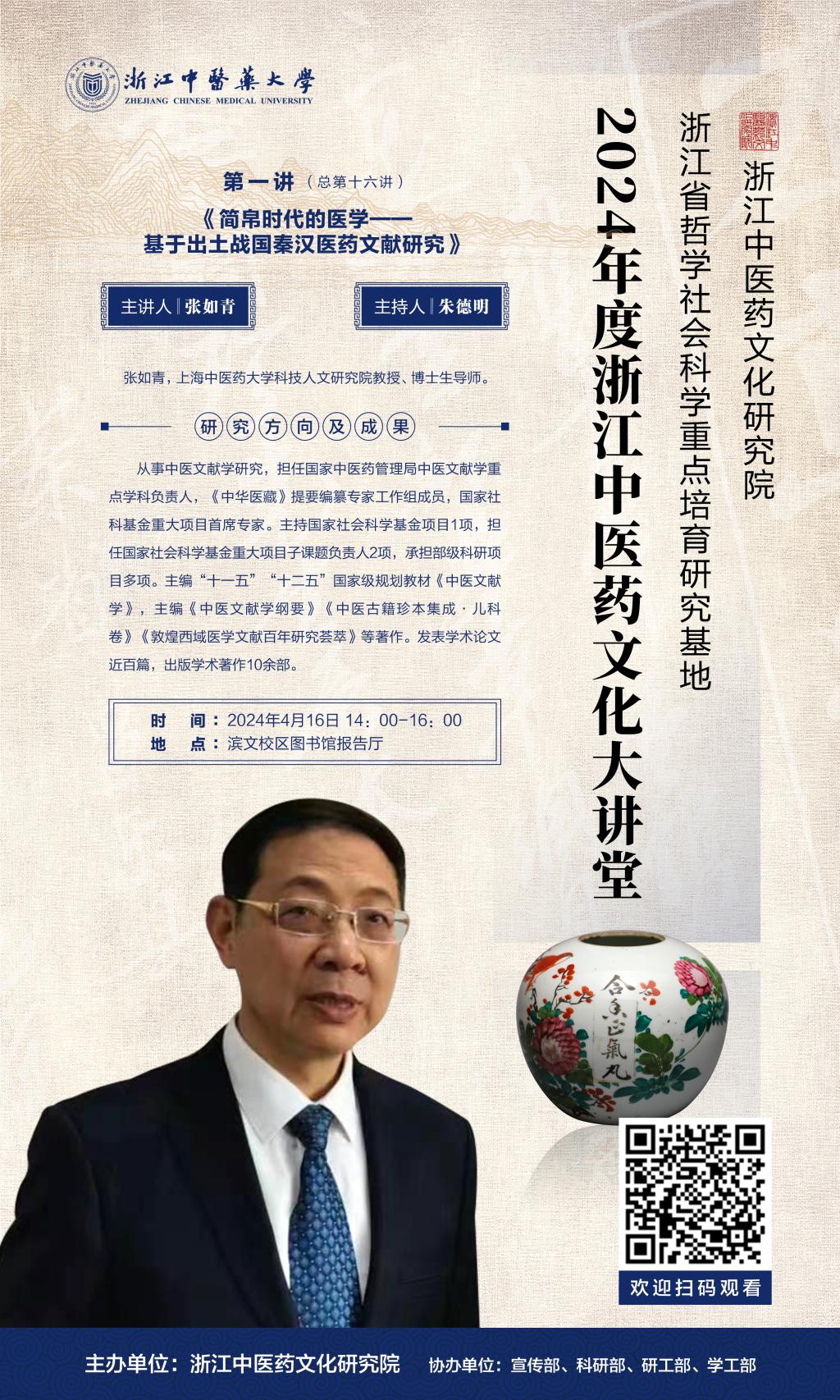 浙江中医药文化大讲堂第十六讲:张如青教授——简帛时代的医学/基于出土战国秦汉医药文献研究
