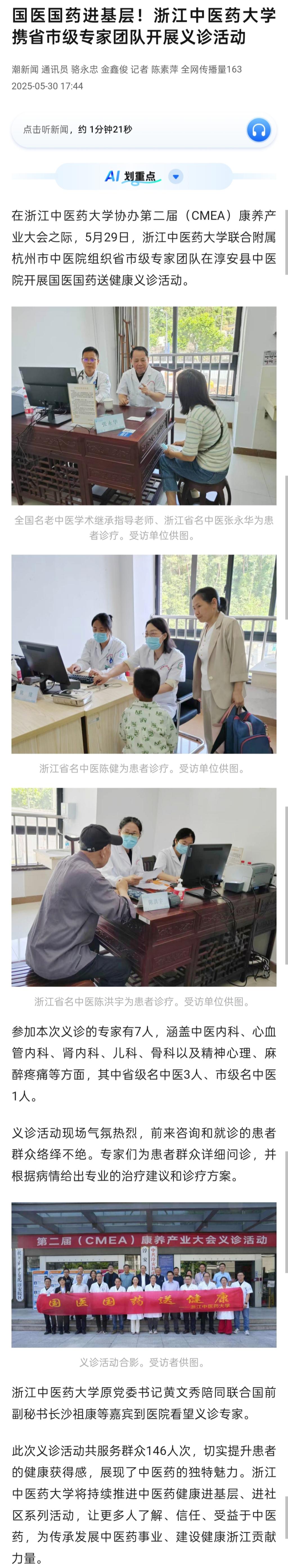 潮新闻:国医国药进基层!久久精品一区二区三区四区携省市级专家团队开展义诊活动