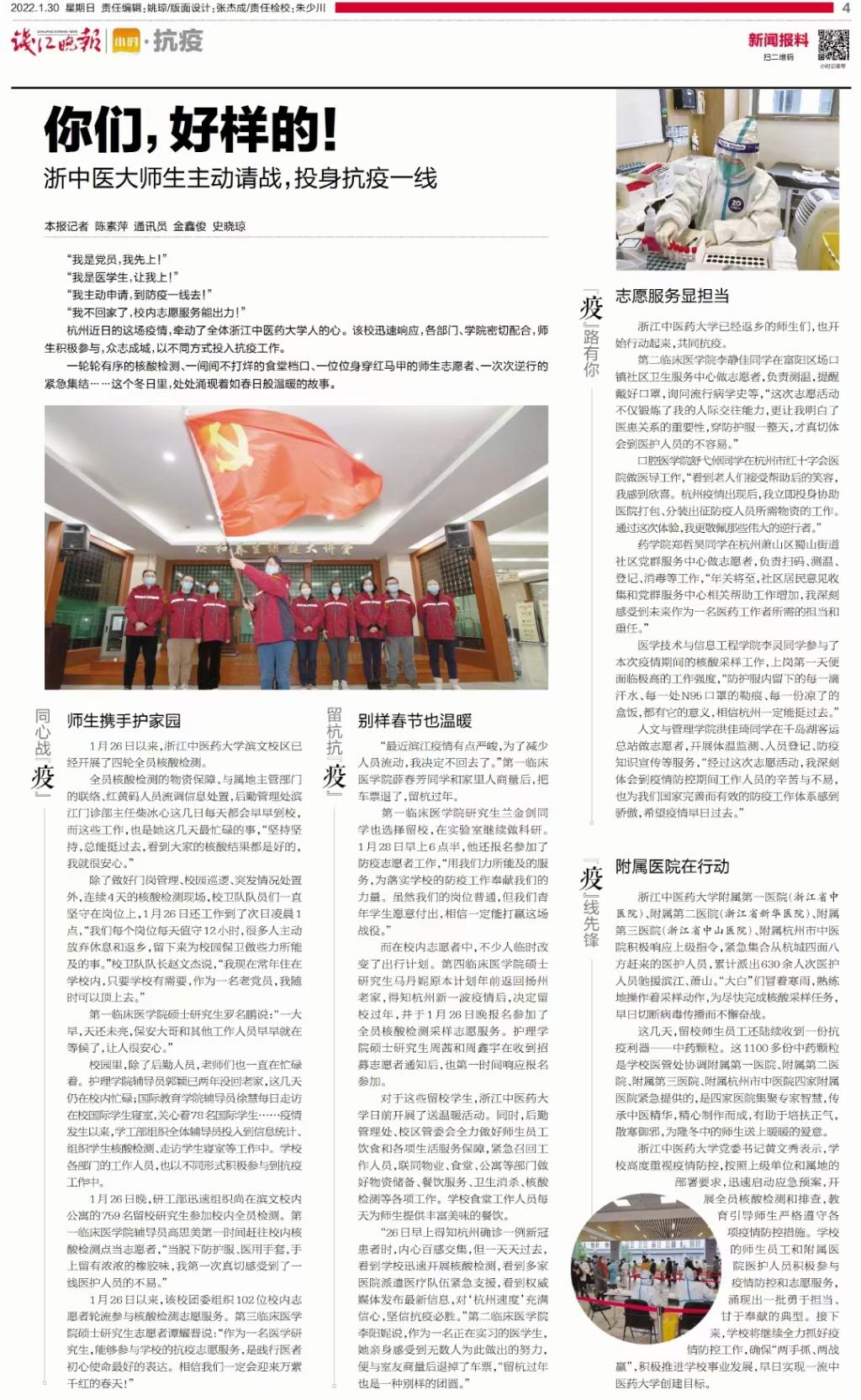 杭州近日的这场疫情,牵动了全体久久精品一区二区三区四区人的心。该校迅速响应,各部门、学院密切配合,师生积极参与,众志成城,以不同方式投入抗疫工作。