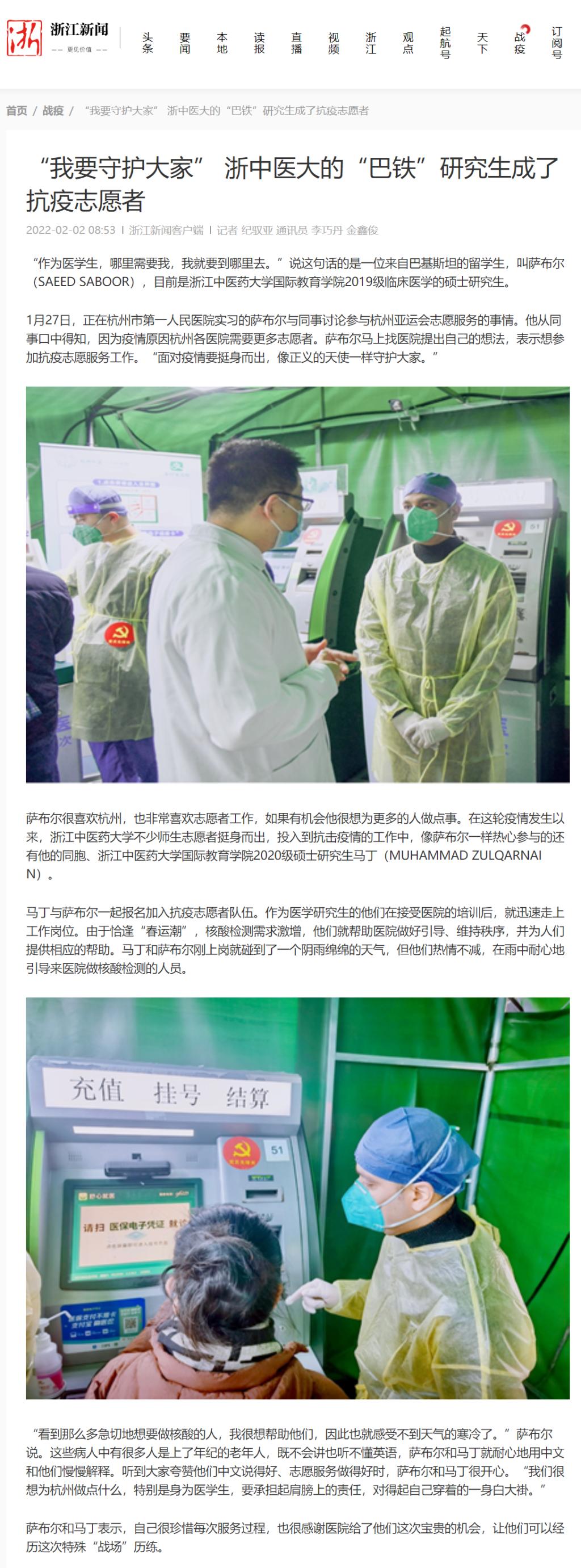浙江新闻:“我要守护大家”浙中医大的“巴铁”研究生成了抗疫志愿者