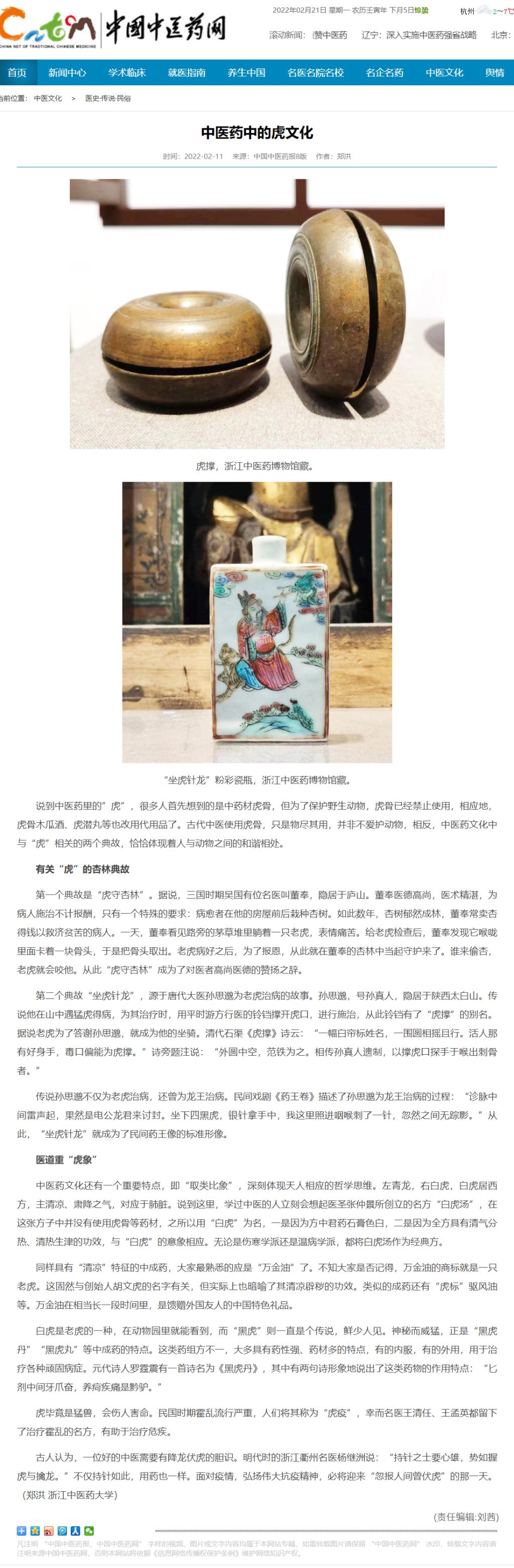 说到中医药里的”虎”,很多人首先想到的是中药材虎骨,但为了保护野生动物,虎骨已经禁止使用,相应地,虎骨木瓜酒、虎潜丸等也改用代用品了。古代中医使用虎骨,只是物尽其用,并非不爱护动物,相反,中医药文化中与“虎”相关的两个典故,恰恰体现着人与动物之间的和谐相处。