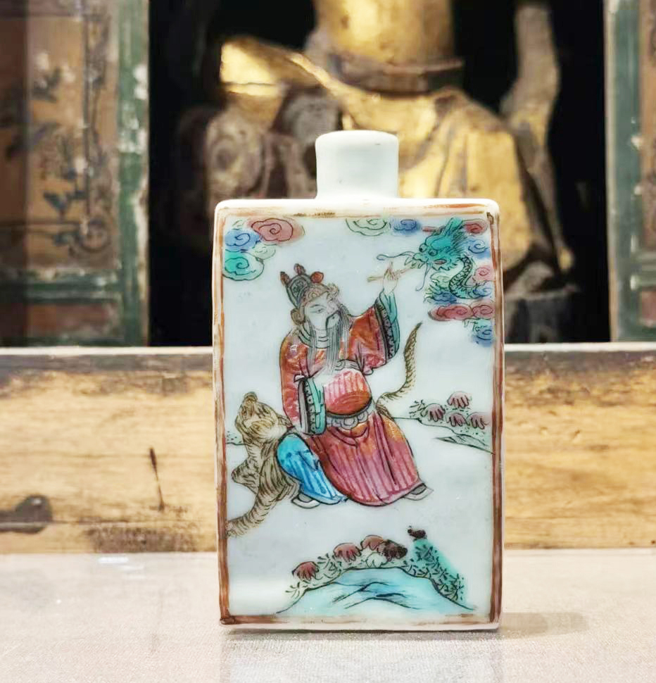 “坐虎针龙”粉彩瓷瓶,浙江中医药博物馆藏。