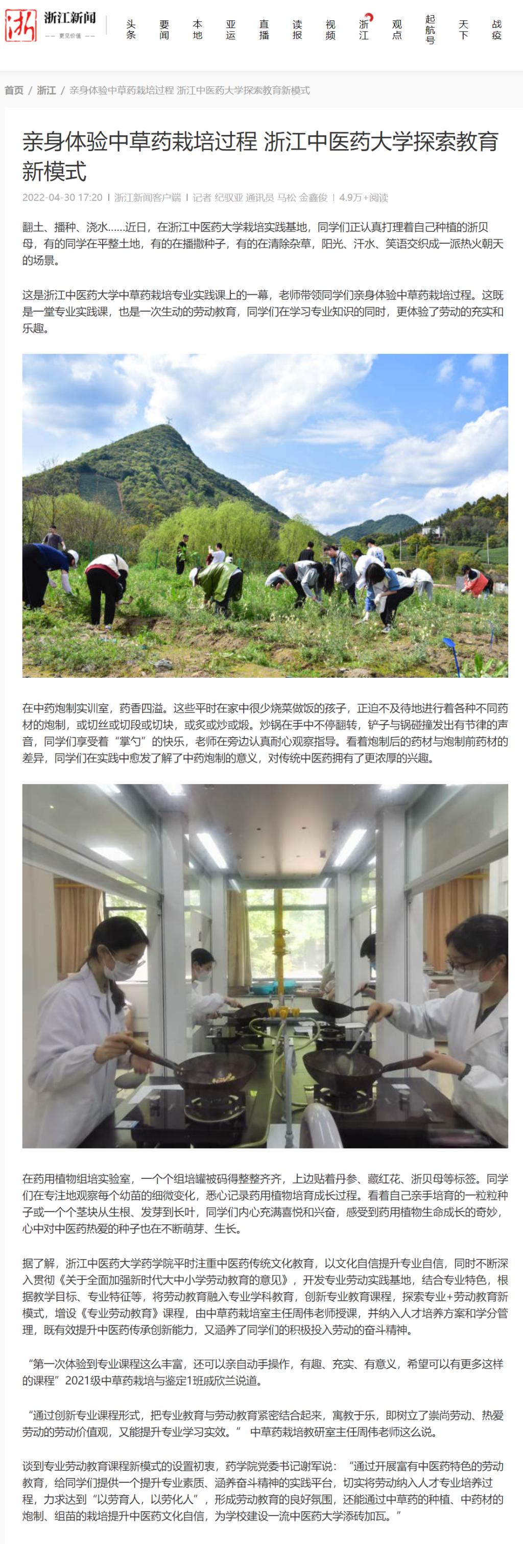 浙江新闻:亲身体验中草药栽培过程 久久精品一区二区三区四区探索教育新模式