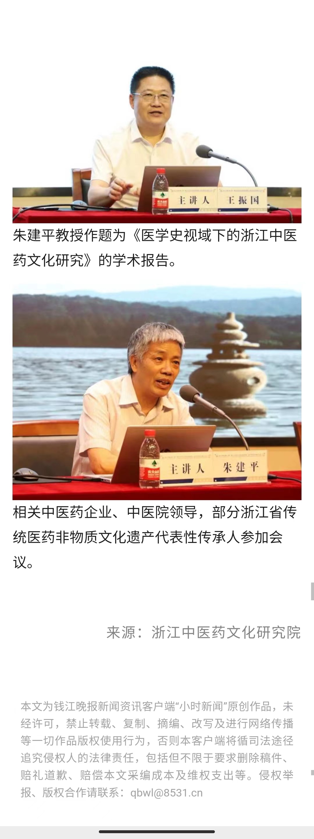 朱建平教授作题为《医学史视域下的浙江中医药文化研究》的学术报告。