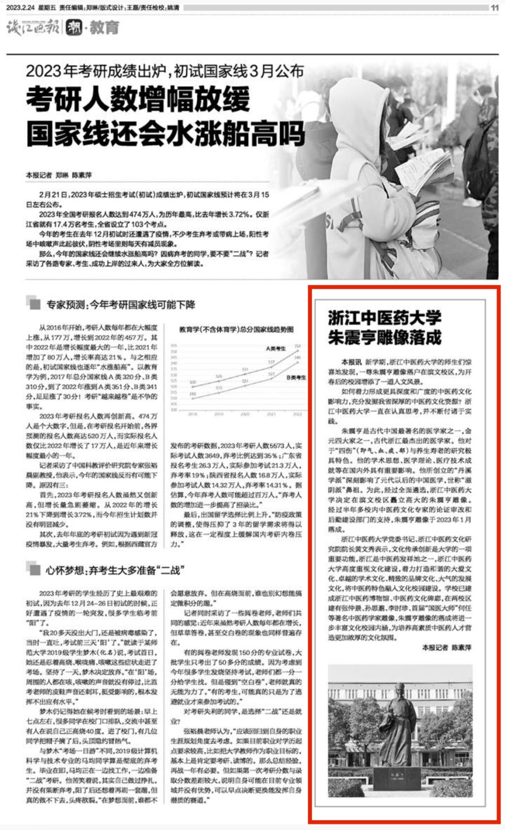 钱江晚报、潮新闻:久久精品一区二区三区四区朱震亨雕像落成:格物致知施仁术,博采众长创新知