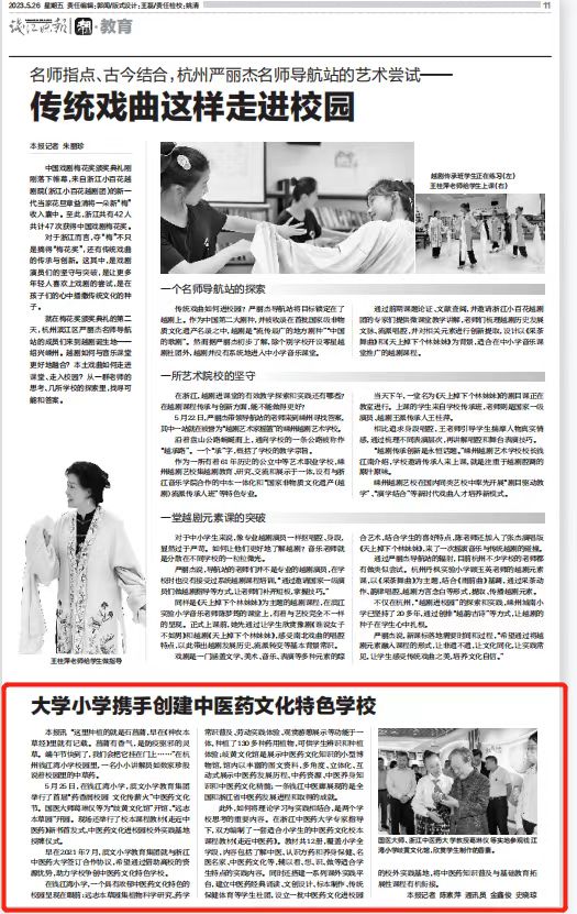 杭州日报:"“好邻居”送来“宝藏”文化 大学小学携手创建中医药文化特色学校"