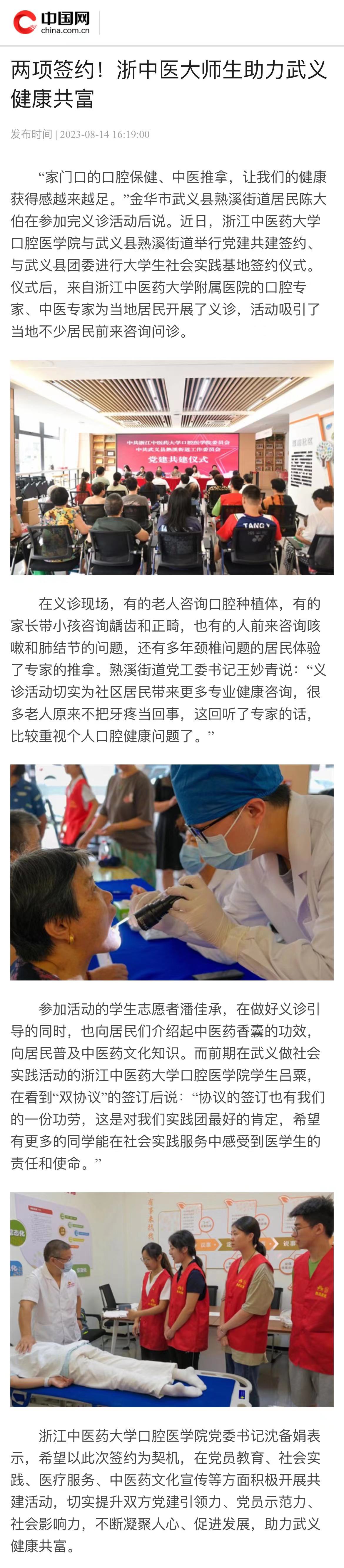 中国网:两项签约!浙中医大师生助力武义健康共富