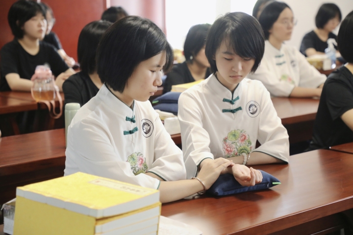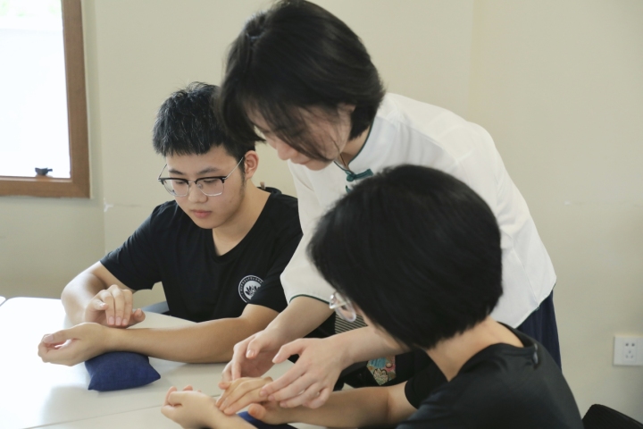 记者在课表上看到,他们的暑训日常安排是这样的:每天早上6点半起床洗漱吃饭后,开始半小时的打坐练习,紧接着是脉理知识的学习,练习把脉、针灸、艾灸等传统中医技能是一天的重头戏。