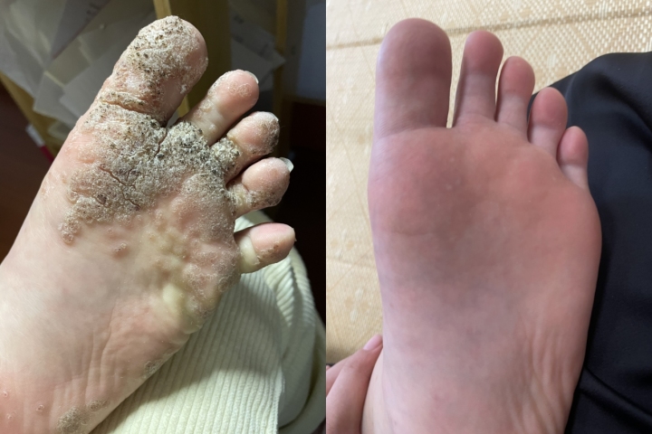 盛春晨的足部疾病 治愈前(左)治愈后(右)