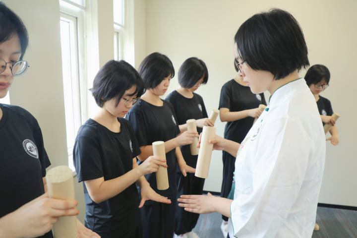 “教的过程,能思考得更多。”徐铮伊是艾灸学习中的优等生,她能站立两小时持续旋转艾柱,“按照师父教给我们的,艾灸灸一段时间温度会下来,我的一只手会放在患者身上,这样就能感知温度,不用问患者烫了还是凉了,可以通过控制高低保持温度不变,手转动的速度、艾柱的高度、艾灸时的温度,都要牢牢把控住,这样才有疗效。”