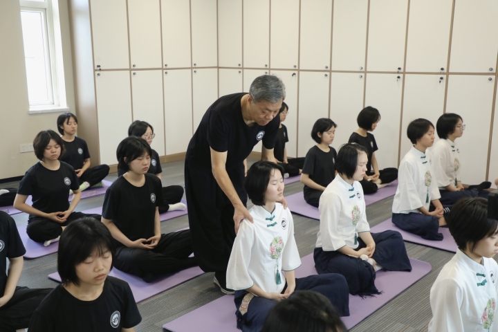 留小忠教授指导学生进行打坐