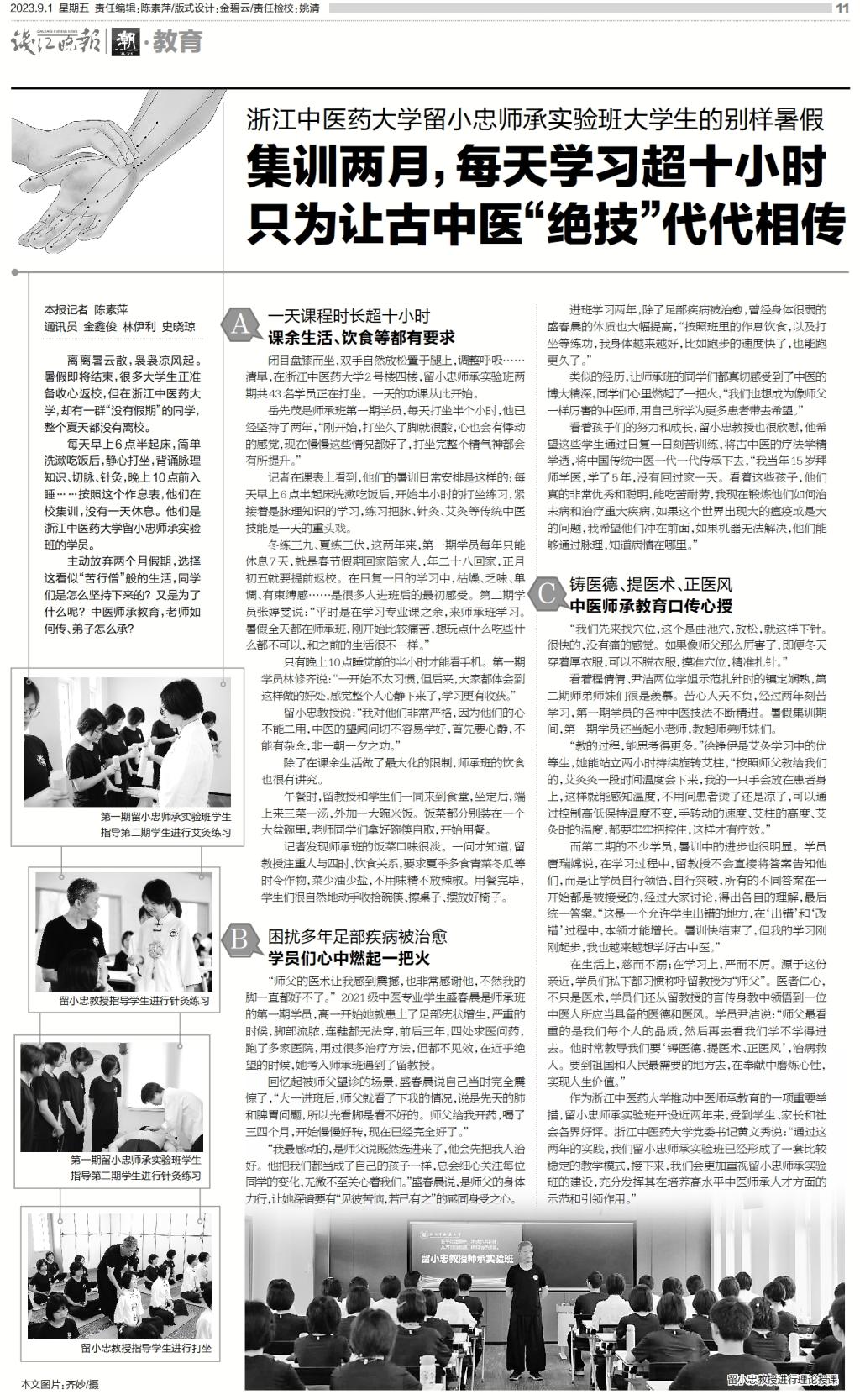 浙江电视台、钱江晚报、潮新闻:浙中医大留小忠师承实验班暑期成效及办班成果