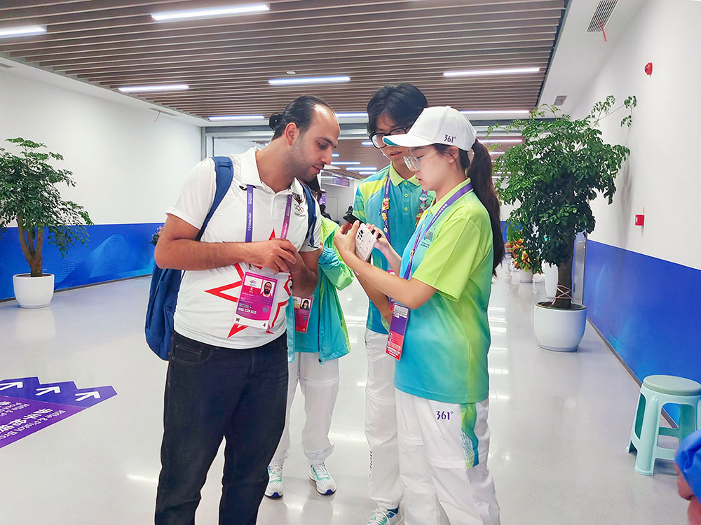 亚运会、亚残运会期间,学校共选派志愿者1216人次,其中亚运会志愿者698人次,亚残运会志愿者518人次,开展为期58天的亚运场馆志愿服务工作。志愿者们坚持发挥专业、敬业、精业的精神,以饱满的热情、专业的服务、过硬的本领投入到赛事的各个领域工作中,为观众、运动员、记者、裁判等提供志愿服务。