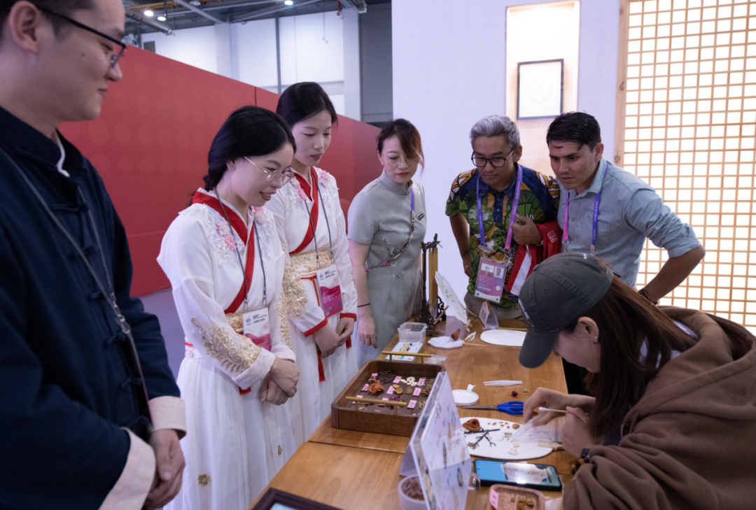 从当天下午一点半不到,到下午五点结束时,等候体验的人员依旧排着长长的队伍,临时延长了半小时。前来参观的各国媒体和工作人员几乎体验了每个项目,各项目累计服务达三百多人次。