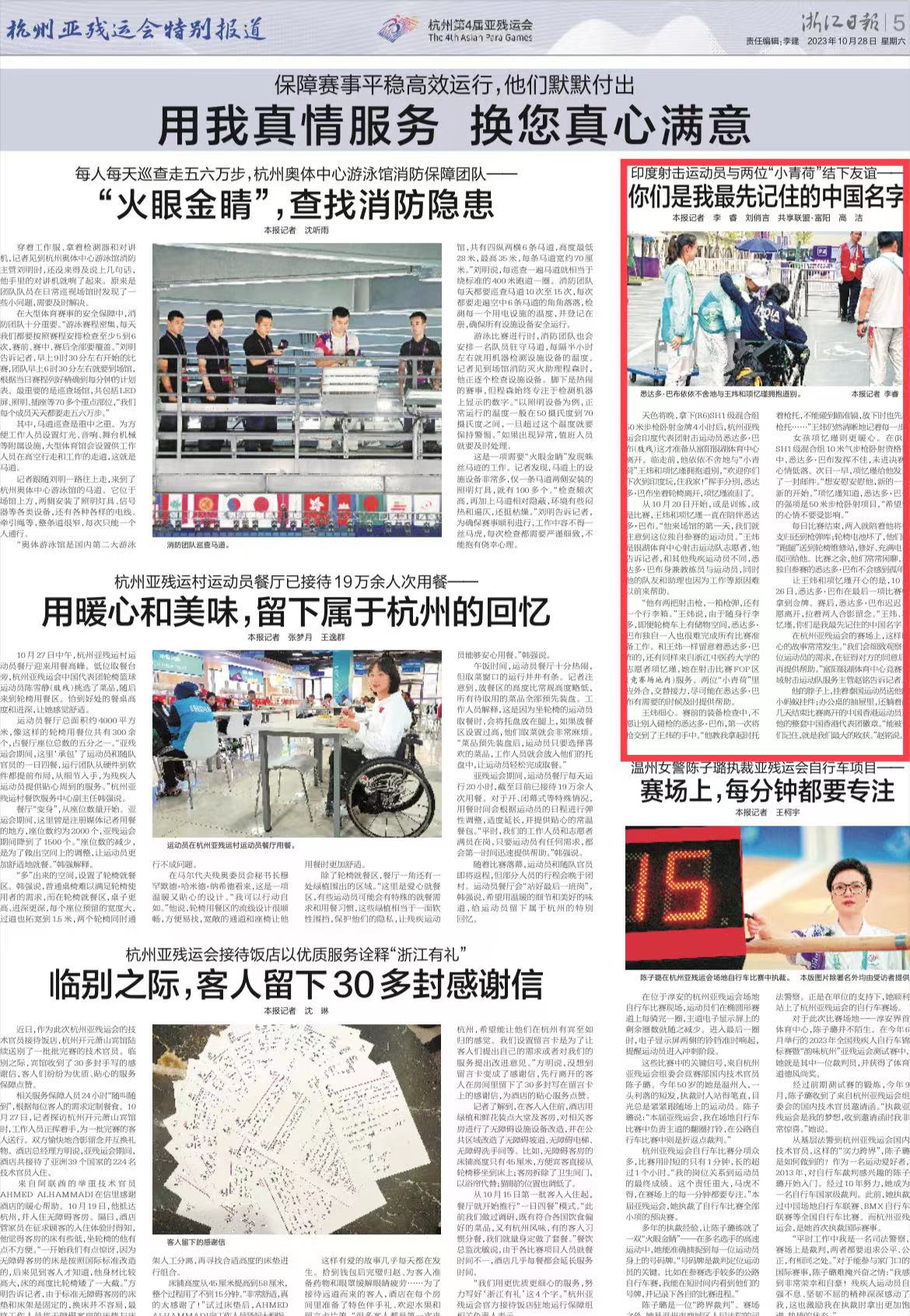 浙江日报:印度射击运动员与两位“小青荷”结下友谊—— 你们是我最先记住的中国名字