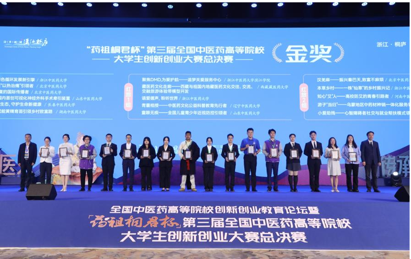 近日,全国中医药高等院校创新创业教育论坛暨“药祖桐君杯”第三届全国中医药高等院校大学生创新创业大赛总决赛在浙江桐庐举行。大赛共吸引了来自全国45所中医药相关院校、10996个项目报名参加。经过各院校校级初赛、全国总决赛网评,共有92个项目入围总决赛,最终共评选金奖31项,银奖61项。