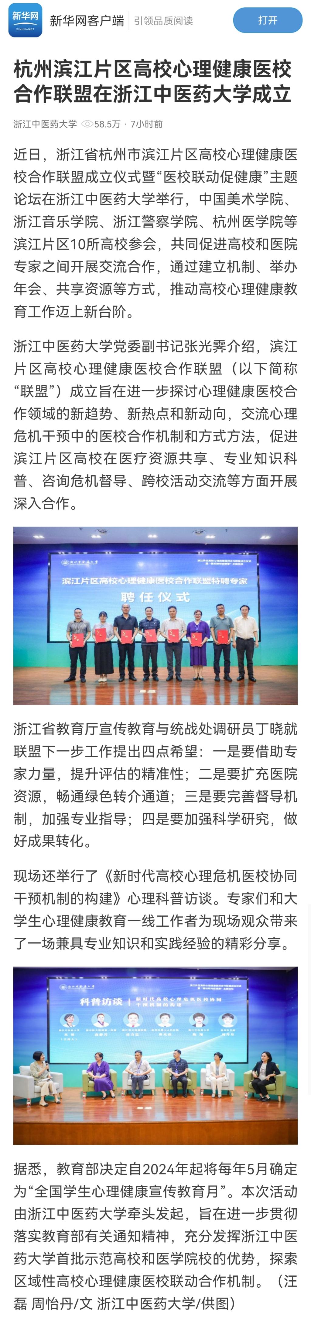 新华网:杭州滨江片区高校心理健康医校合作联盟在久久精品一区二区三区四区成立